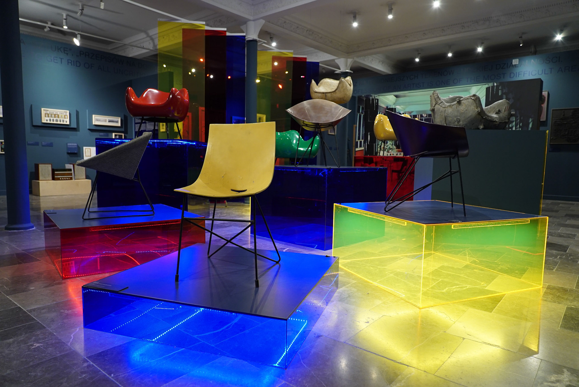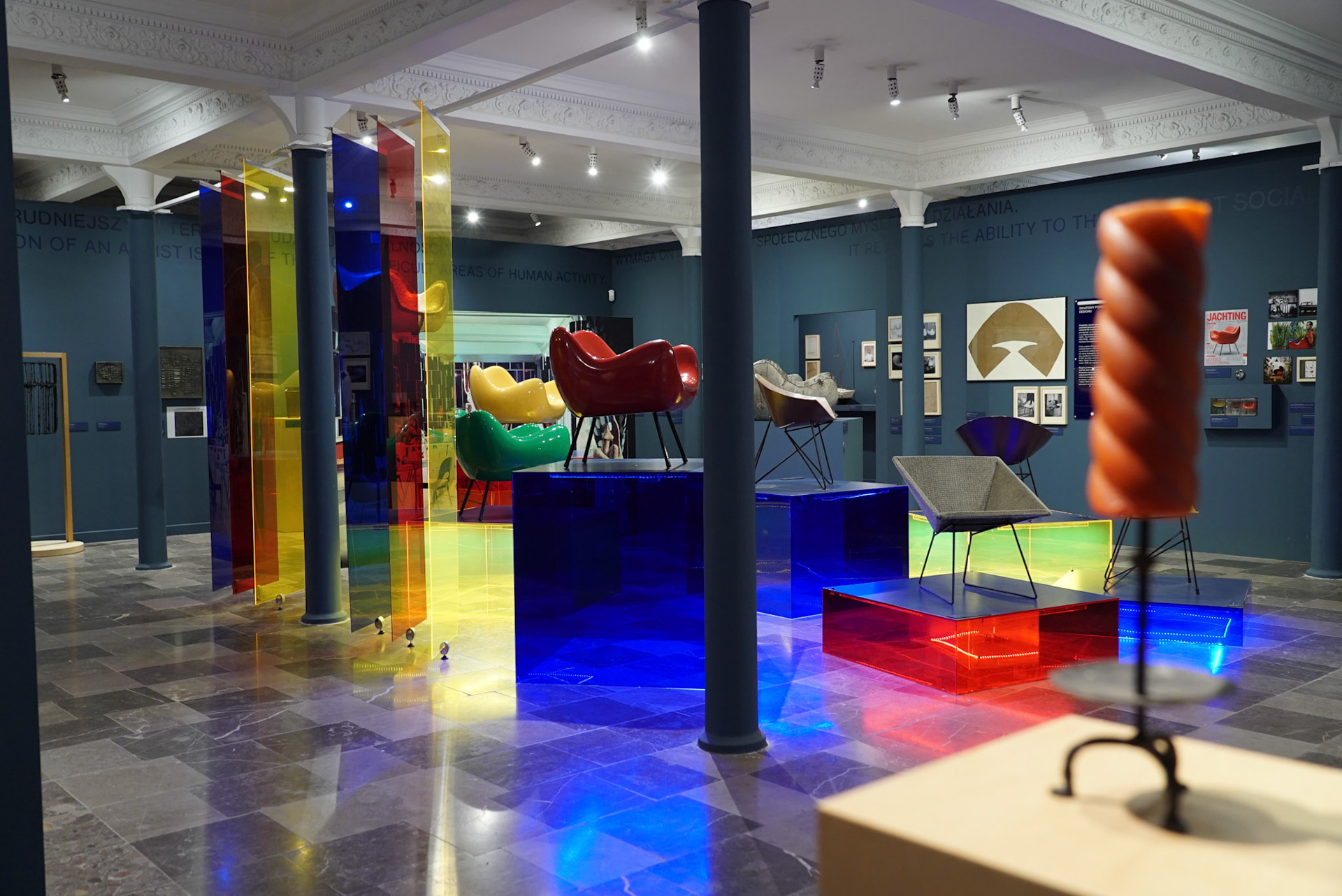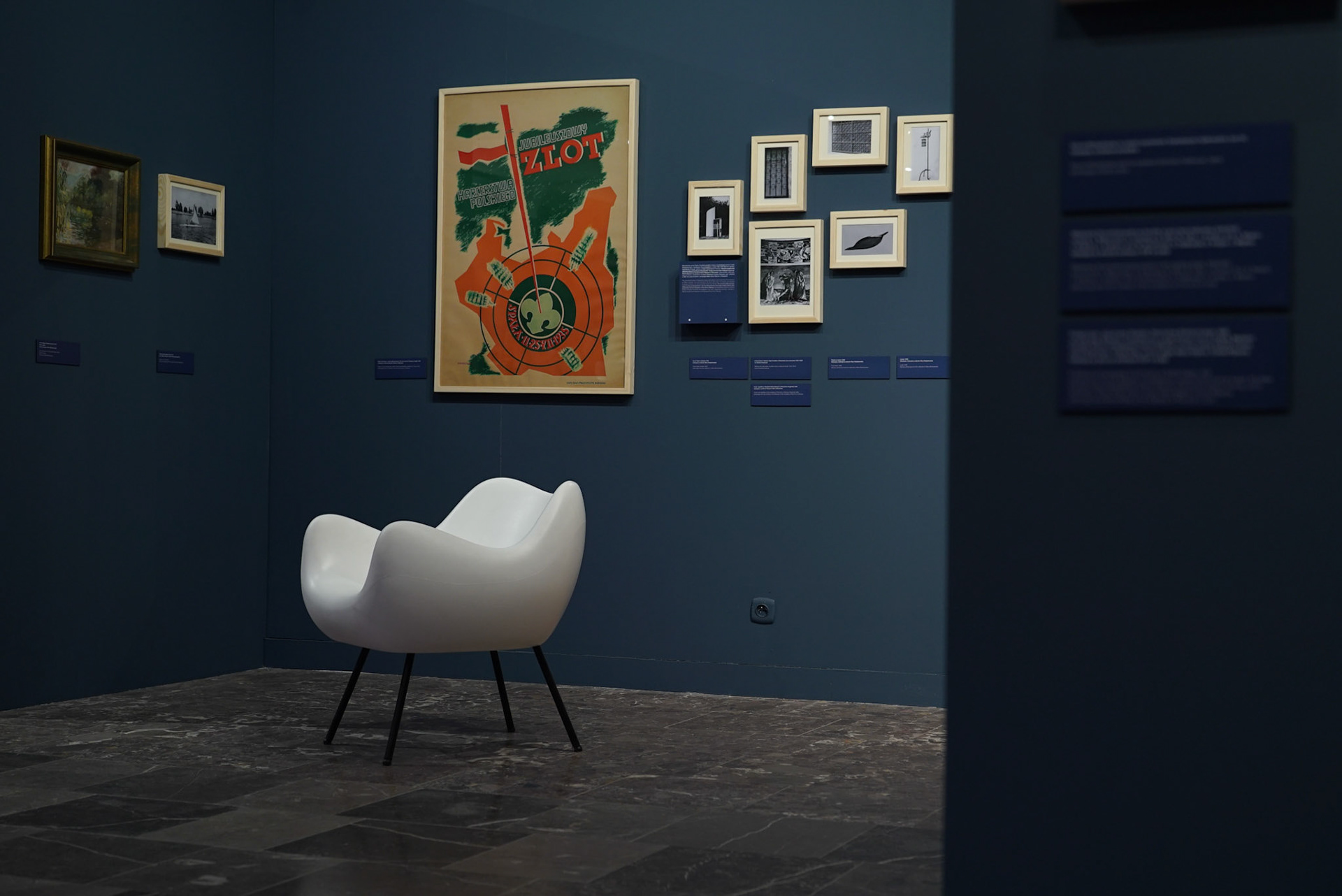 Wystawa „RM. Roman Modzelewski. Sen o Łodzi” opowiada o łódzkim artyście, który w swojej działalności zarówno dydaktycznej jak i twórczej kontynuuje myślenie Władysława Strzemińskiego. Kuratorska myśl biegnie od rozwoju artystycznego twórcy, przez jego doświadczenia dydaktyczne, żeglarską pasję aż po ikonę designu czyli fotel RM.58. Architektura wystawy została podzielona na 7 stref tematycznych. Niebieski kolor, który zalewa przestrzeń nawiązuje do zamiłowania do żeglarstwa, użycie plexi w walltekstach oraz sklejki w kubikach pokazuje rozwójj Modzelewskiego w zakresie materiałoznawstwa. Artysta zasłynął między innymi swoimi eksperymentami zarówno z formą jak i materiałem obiektów. Całość wystawy została opatrzona krytycznymi komentarzami oraz cytatami z Modzelewskiego.