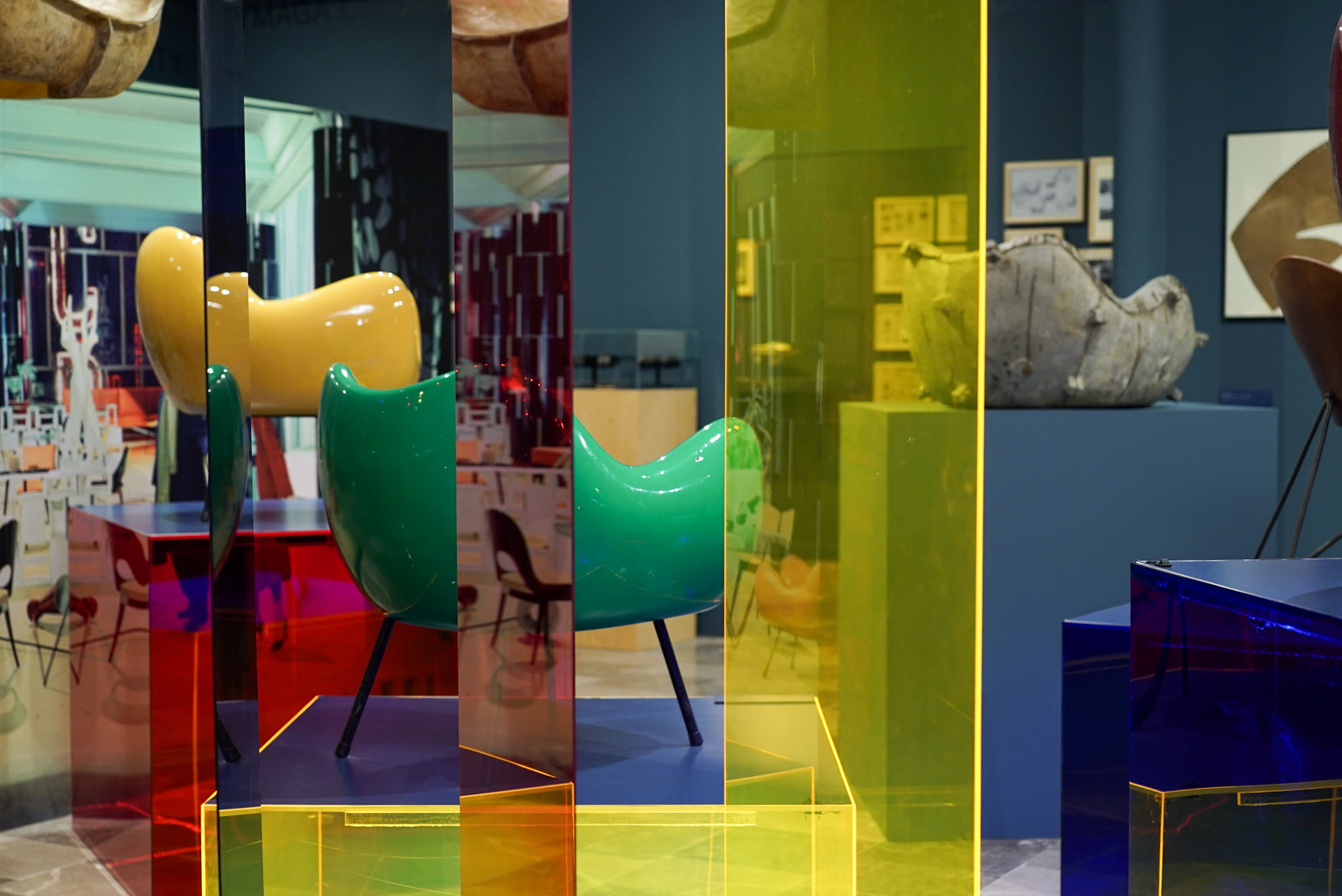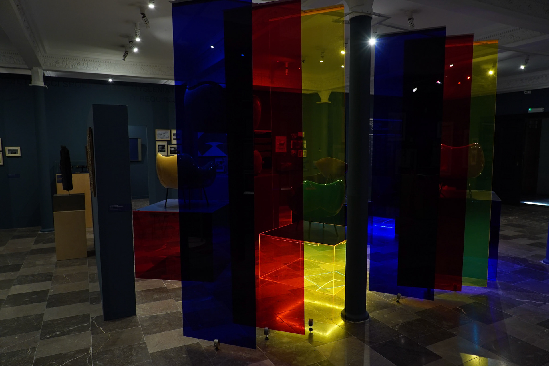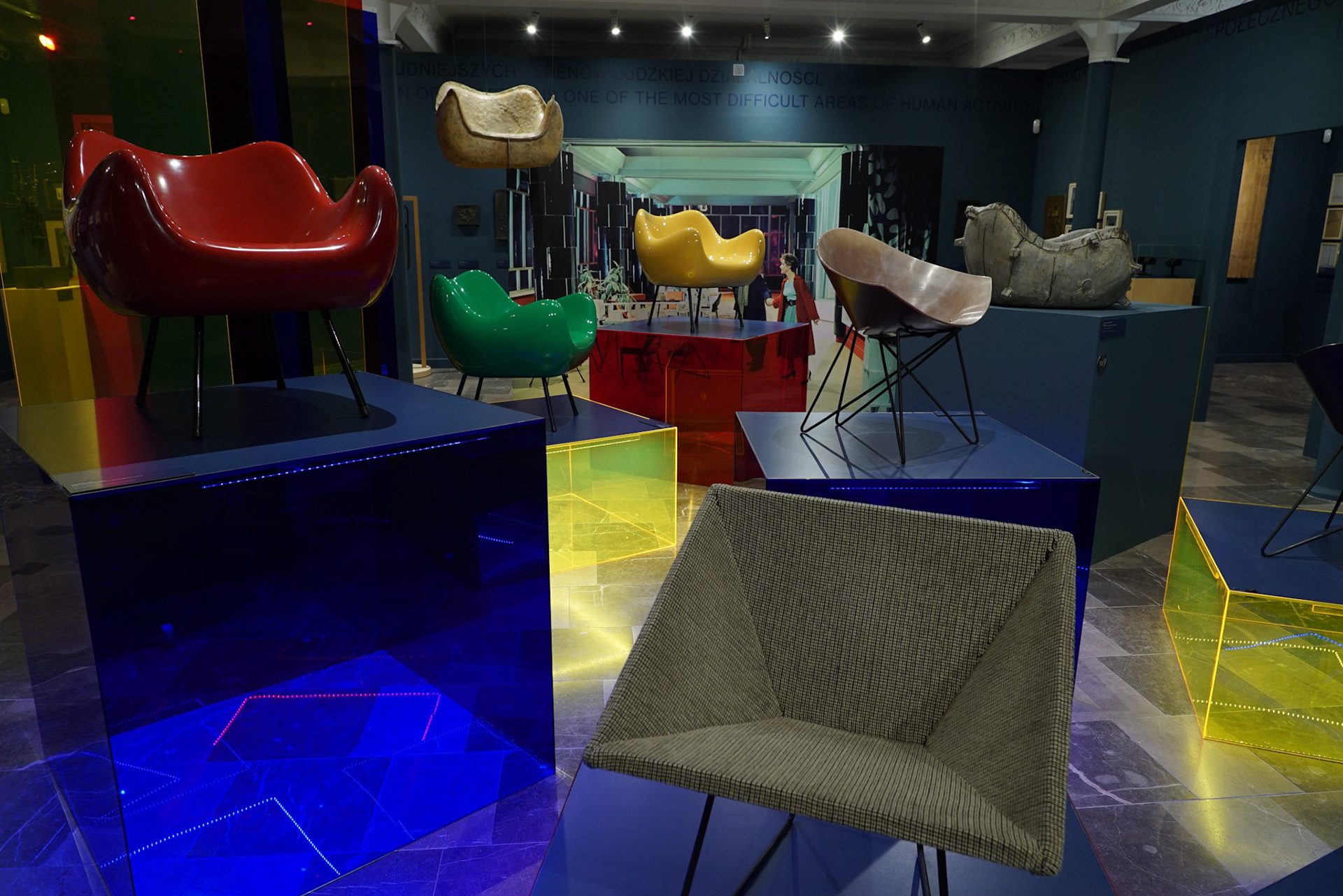 Wystawa „RM. Roman Modzelewski. Sen o Łodzi” opowiada o łódzkim artyście, który w swojej działalności zarówno dydaktycznej jak i twórczej kontynuuje myślenie Władysława Strzemińskiego. Kuratorska myśl biegnie od rozwoju artystycznego twórcy, przez jego doświadczenia dydaktyczne, żeglarską pasję aż po ikonę designu czyli fotel RM.58. Architektura wystawy została podzielona na 7 stref tematycznych. Niebieski kolor, który zalewa przestrzeń nawiązuje do zamiłowania do żeglarstwa, użycie plexi w walltekstach oraz sklejki w kubikach pokazuje rozwójj Modzelewskiego w zakresie materiałoznawstwa. Artysta zasłynął między innymi swoimi eksperymentami zarówno z formą jak i materiałem obiektów. Całość wystawy została opatrzona krytycznymi komentarzami oraz cytatami z Modzelewskiego.
